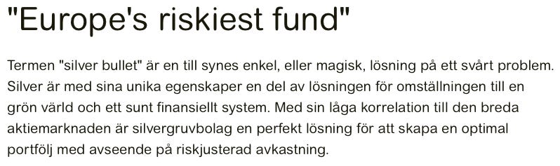 Bland de största innehaven finns First Majestic Silver och Pan American Silver, två ledande aktörer inom silverbrytning som direkt gynnats av prisuppgången. Strands strategi att fokusera på företag med hög exponering mot silverpriser har bidragit till fondens starka resultat och dess tydliga position inom en blomstrande sektor.