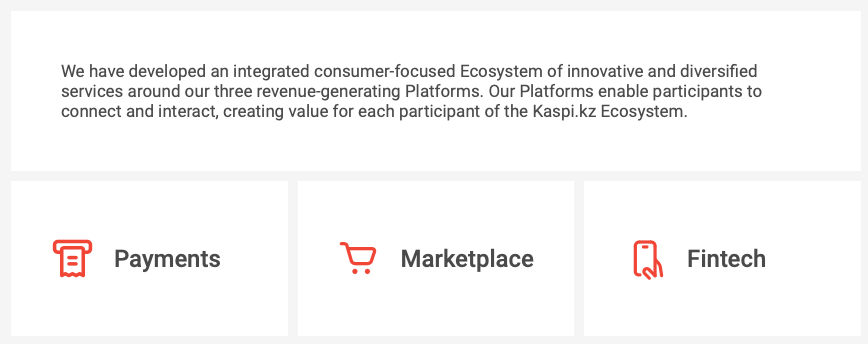 Med sin plattform Kaspi.kz har Kaspi blivit en del av den dagliga ekonomiska infrastrukturen för många kazakiska konsumenter. Plattformen som erbjuder allt från betalningar och finansiella tjänster till e-handel och är den mest använda appen i Kazakstan, med en lojal kundbas.