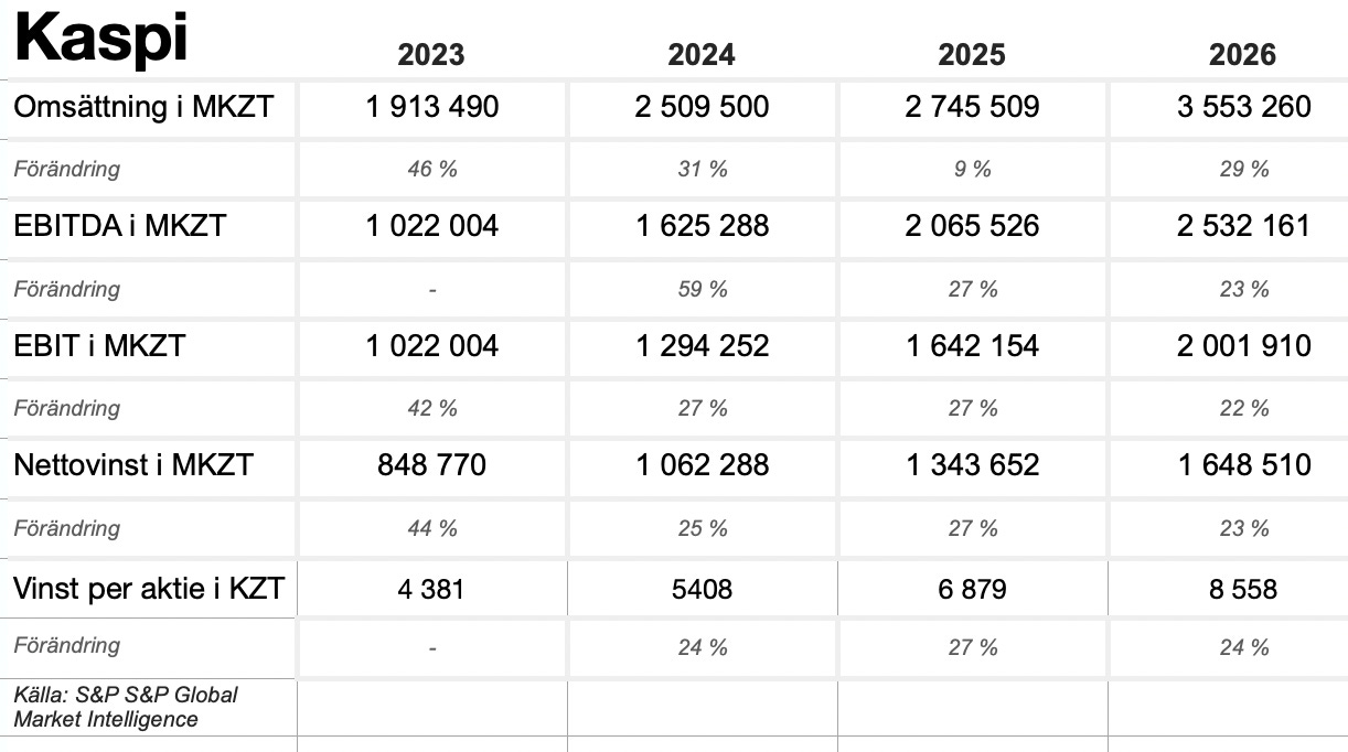 Kaspi ser ut att vara på väg mot fortsatt stark tillväxt under de kommande åren enligt analytikerestimat från S&P Global Market Intelligence.