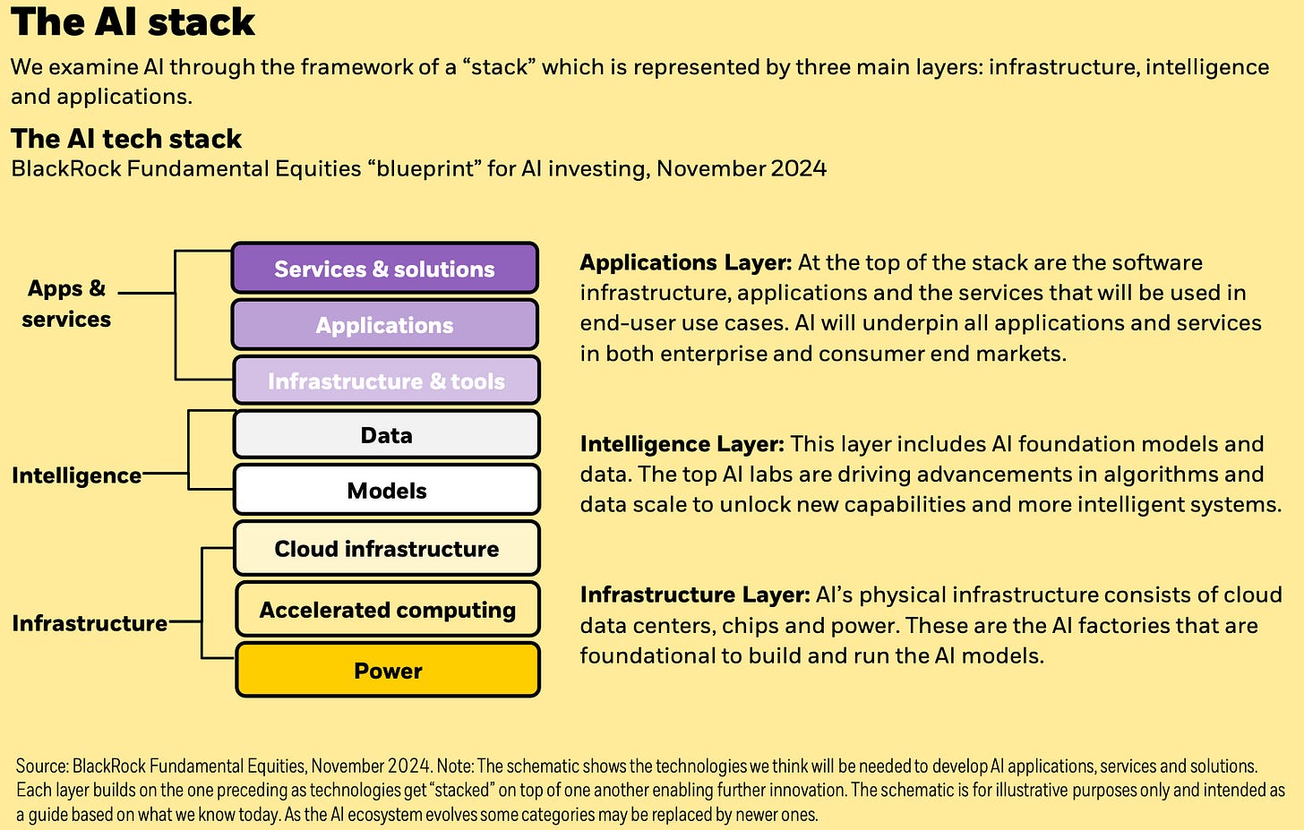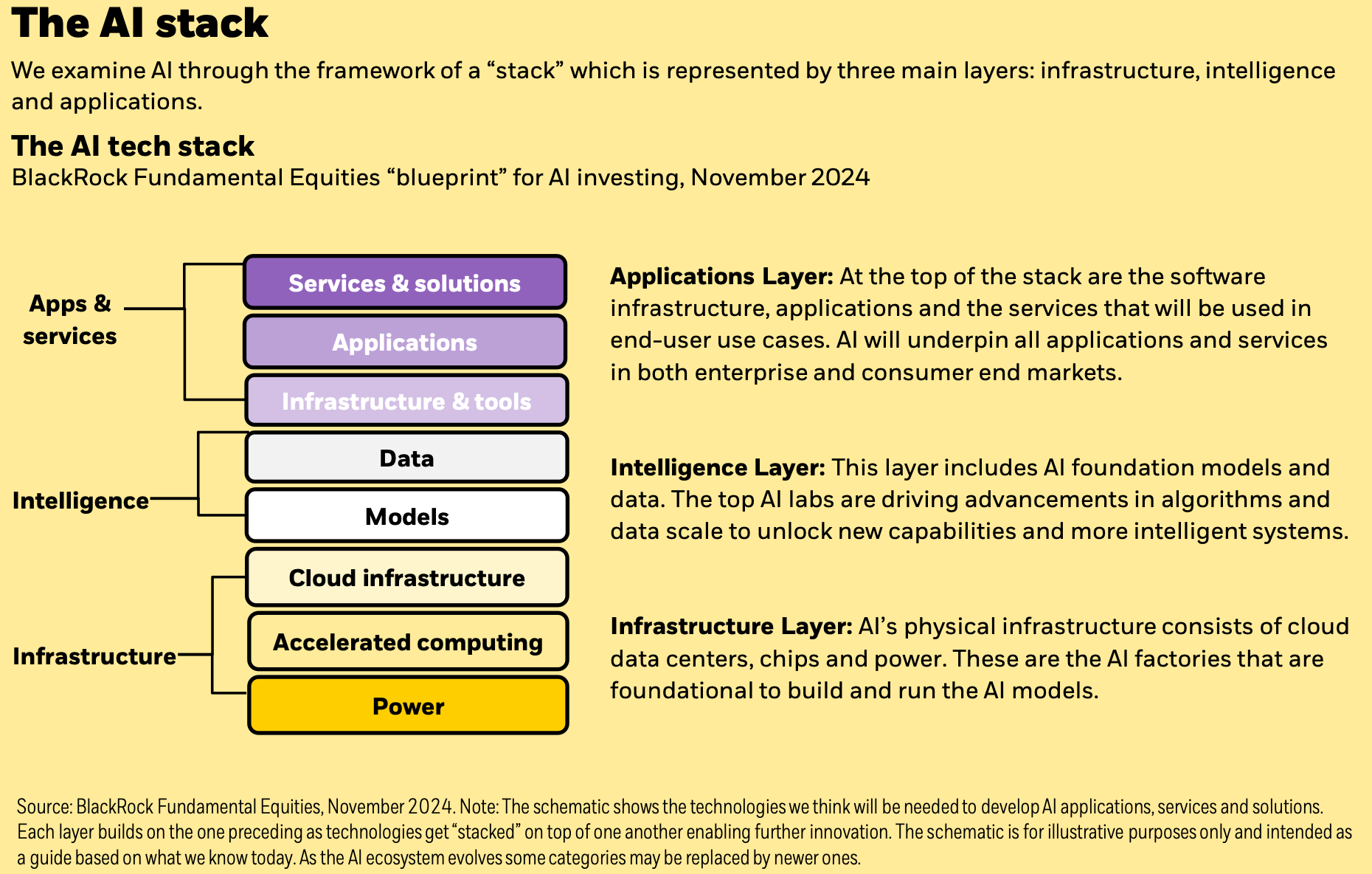 Blackrocks rapport lyfter fram fyra centrala strategier för att investera i AI:s framväxt med fokus på infrastruktur, marknadsledare, onoterade bolag och framtida intäktsströmmar.