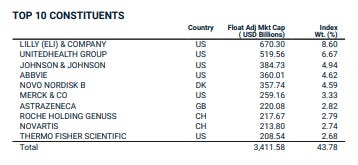 Indexet, som är marknadsviktat, omfattar stora och medelstora bolag inom medicinteknik, läkemedel, bioteknik och vårdtjänster.