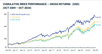 Hälso- och sjukvårdssektorn har historiskt sett varit en källa till stabil avkastning. En åldrande och rikare befolkning globalt talar för ökad efterfrågan på medicinska tjänster och produkter.