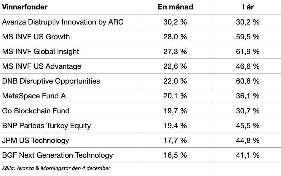 Efter det amerikanska presidentvalet har vi sett stora omallokeringar av kapital. Teknikfonder och innovativa investeringar har presterat bäst, medan Latinamerika och förnybar energi har underpresterat.