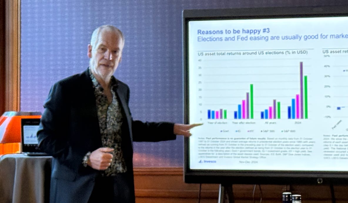Vid ett seminarium i Stockholm presenterade Invesco-strategen Paul Jackson sina tankar kring finansmarknadernas utveckling under 2025. Hans analys präglas av en försiktig optimism, där flera positiva faktorer lyfts fram, men också varningar för risker som kan påverka investeringsklimatet 2025.