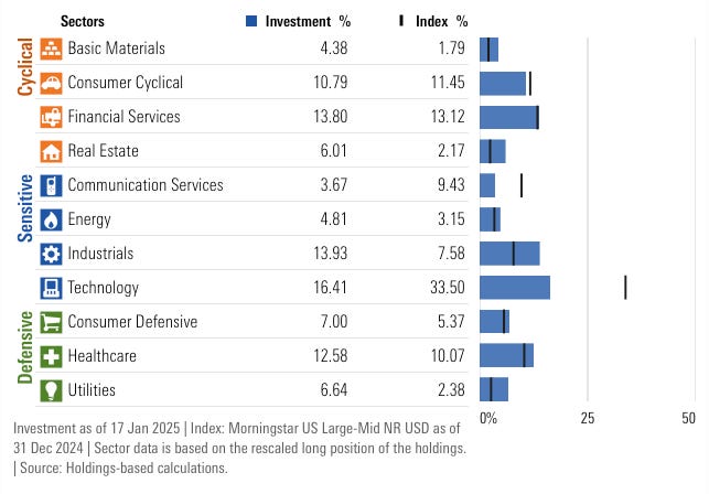 I det traditionella S&P 500 dominerar tekniksektorn, som står för en tredjedel av indexets vikt. I det likaviktade indexet är teknik fortfarande den största sektorn, men dess dominans är betydligt mindre uttalad och sektorer som industri och sjukvård får en mer framträdande roll.
