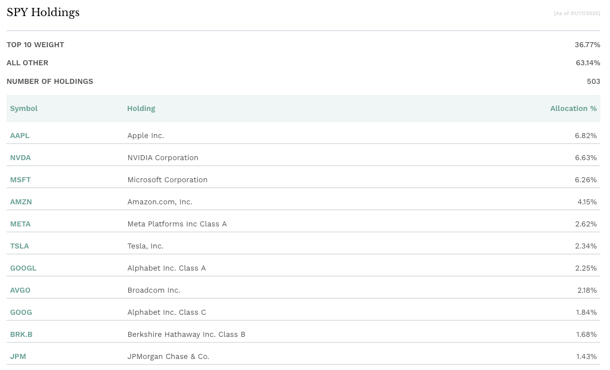 Idag står de tio största bolagen för knappt 37 procent av indexets totala värde, medan de tre största—Apple, Microsoft och Nvidia—ensamma utgör nästan 20 procent.