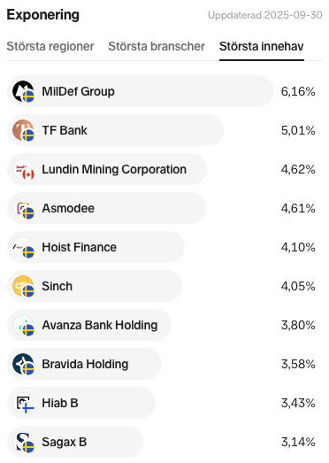 Fonden investerar i kvalitetsbolag med starka kassaflöden och uthållig tillväxt. Portföljen är koncentrerad och bygger på djup bolagsanalys snarare än indexviktning, med ett tydligt fokus på nordiska små- och medelstora bolag.