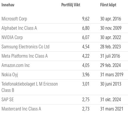 Förvaltarteamet investerar i kvalitetsbolag med starka kassaflöden, hög uthållighet och god värderingspotential. Fonden är koncentrerad och bygger på egen analys bortom index.