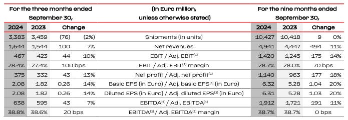 Ferrari levererade under tredje kvartalet ett resultat som var i linje med marknadens förväntningar. Intäkterna steg med 7 procent till 1,6 miljarder euro och nettovinsten ökade med 13 procent till 375 miljoner euro.