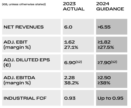 Ledningen upprepade prognosen för helårsresultatet 2024. Ferrari spår fortsatt att omsättningen i år blir minst 6,55 miljarder euro. Under 2023 var omsättningen 6,0 miljarder. Det justerade ebitda-resultatet bedöms landa på minst 2,5 miljarder. Under 2023 var resultatet 2,28 miljarder. Och vinsten per aktie förväntas landa på minst 7,9 euro jämfört med 6,9 euro för 2023.