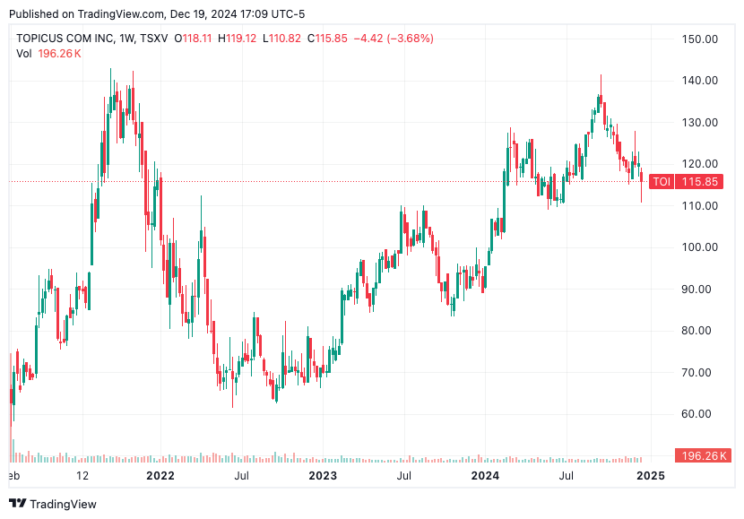 Även om Topicus.com är verksamt i Europa är bolaget noterade på kanadensiska TSX Venture Exchange. Bolaget har ett börsvärde på 9 miljarder kanadensiska dollar och aktien är upp 25 procent under 2024. Investerare får, baserat på innevarande år, betala 27 gånger kassaflödet för aktien.