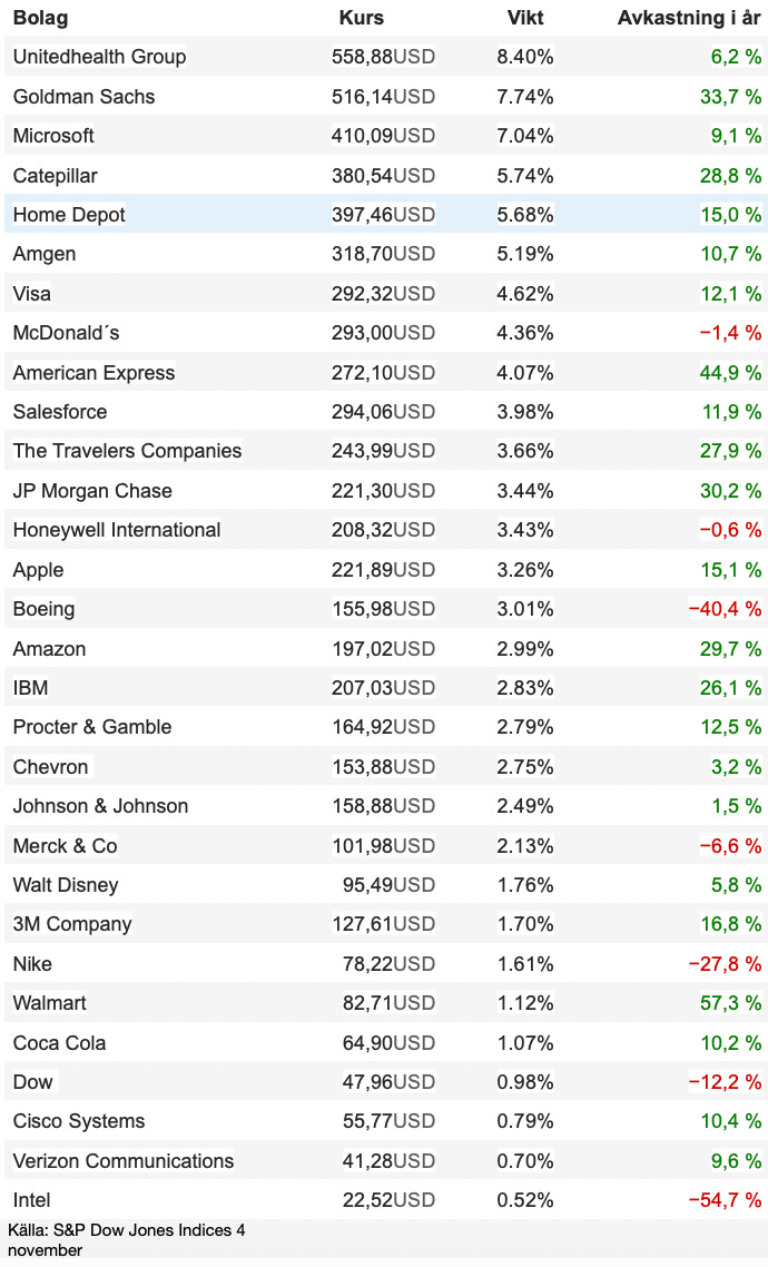 Det är ett av världens mest välkända och prestigefyllda aktieindex som symboliserar och speglar utvecklingen i den amerikanska ekonomin. Nvidia ersätter Intel som är en av de mest klassiska chip-tillverkarna i USA. Nvidia är ett företag som på senare tid kommit att dominera halvledarsektorn med sitt fokus på avancerad databehandling och artificiell intelligens (AI).