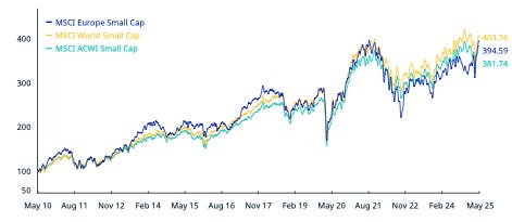 Det nya mönstret avspeglas redan i årets avkastning. Under första halvåret 2025 har MSCI Europe Small Cap stigit med 12,7 procent i lokal valuta, klart före MSCI USA Small Cap som ökat 6,4 procent.
