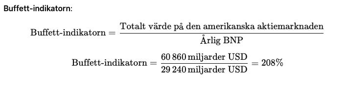 Buffett-indikatorn är ett enkelt men kraftfullt mått som jämför det totala börsvärdet för alla noterade amerikanska bolag med landets bruttonationalprodukt (BNP). Denna indikator ger en översiktlig bild av om aktiemarknaden är över- eller undervärderad i relation till ekonomins storlek.